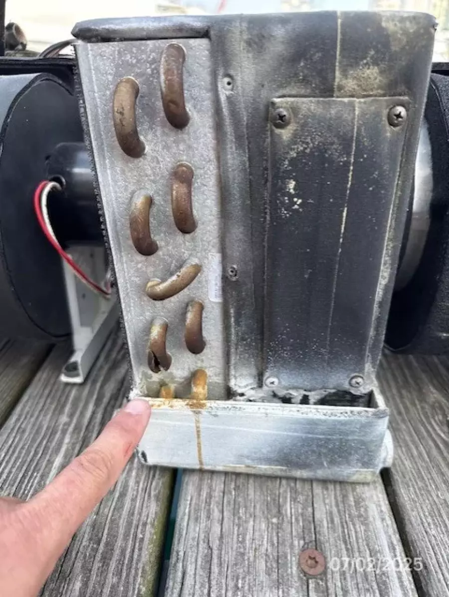 After spending over $1,000 for a new pump and another $800ish for labor, I couldn't find the a/c problem. Matt graciously offered to investigate the a/c system if I brought the vessel and left it at Bay Marine’s yard (and he wouldn’t even charge me for the slip time! Haha). But by this time trust was broken. Given their attitude to date, I assumed Bay Marine might just add antifreeze after-the-fact to cover their butt. So I offered and Matt grudgingly agreed that if I would hire one of Bay Marine’s preferred marine mechanics (they use him regularly for winterizations and a/c repairs) to investigate, he would go along with what the mechanic finds. BS#3. The mechanic declared there was no evidence that the loop, water pump, strainers, expansion tank or air handlers (6) were winterized. In fact, as we went through each handler, we discovered ALL 6 HAD FREEZE DAMAGE (see pic) and had leaked all fluids into the boat. All 6 had to be replaced. The mechanic also stated that common sense says that all these systems breaking at the same time clearly points to winterization not being properly completed. Again, all were in good working order upon my delivery to Bay Marine. Instead of Matt honoring his word to back the mechanic’s findings, and after about $30,000+ spent by me, Matt decided to find someone to say the loop system is the Owner’s responsibility. Matt’s new “expert” claimed that the glycol system in the loop was winter-safe down to about -8 degrees Fahrenheit and it is the OWNER’S FAULT if this system freezes! Matt added that it is Bay Marine’s “policy” to only winterize “water systems” and the loop system has glycol in it so it is their policy to not winterize it! Hmmm. So in the Waukegan IL area, per weather statistics, it is likely for the low temperature to go below -8 in January and February (as backed by actual temps during both the winters of 2023 and 2024). So Bay Marine was now apparently saying… we’ll winterize you’re a/c system, but we have a policy (that we didn’t tell you about) not to winterize loop systems and BTW your loop system is likely to freeze because local temperatures regularly drop below -8 degrees in Waukegan IL where we are located. WOW, Brilliant! Ohh and BTW, per the above, Matt now indirectly admitted they did NOT winterize the loop system even though he previously stated his records proved they did. BS#4 (loosing track).