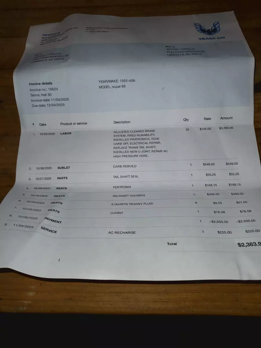 typical test drives. It was an intermittent problem that even after we agreed to fix the transmission the first time still would not have appeared until the car was driven more miles. We replaced the transmission a second time and the car ran and drove well. t-birds have a history of shifter difficulties and we actual found one in a salvage yard, no easy thing, and replaced it.We also had the starter rebuilt as it again after more miles created a problem. We had it rebuilt at no charge and replaced. We also addressed Mr***'s concern about the rear springs and installed a new set of helper springs at no charge.We have done everything in our ability on the car. We did not sell Mr*** a totally restored car but a very good car for the money. I witnessed Mr*** on several occasions driving the car and feel we have done more than most places would with an warranty. Sincerely,*** Ellingson