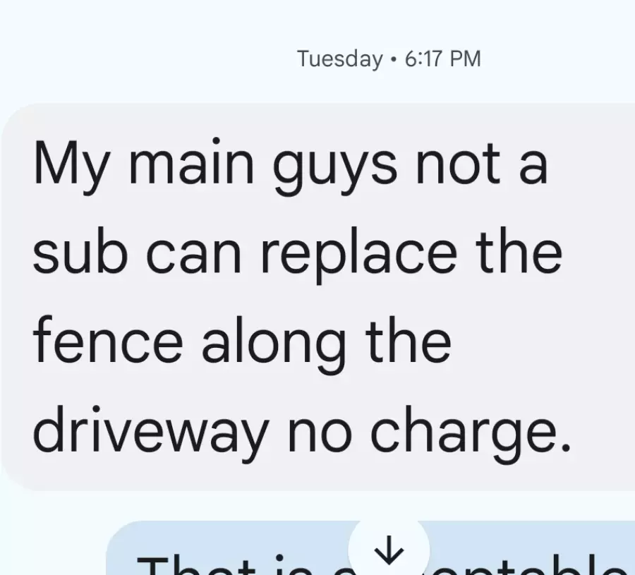 It was bad enough that he said he was going to replace the whole fence for free. I have attached pictures of the texts he sent saying he would replace it.