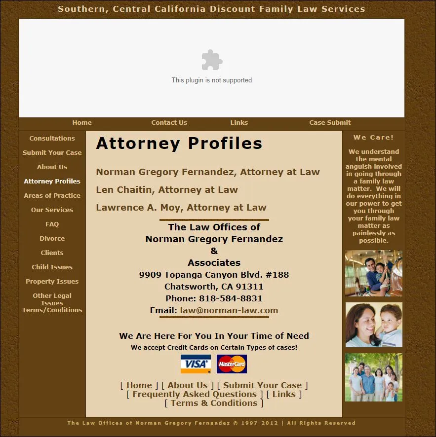 The Law office of Norman G. Fernandez characterization of me is false; I had three websites’ including two sites used to publish reports on corruption and misconduct by various attorneys in different states, as I explain in detail here. My websites on government corruption/misconduct had over 100 articles, videos and updates and under that broader theme I'm making a documentary on the Law office of Norman Gregory Fernandez and Lawrence A. Moy and associates ethics and decisions in the handling of personal injury and family law clients, of which I had been one.
