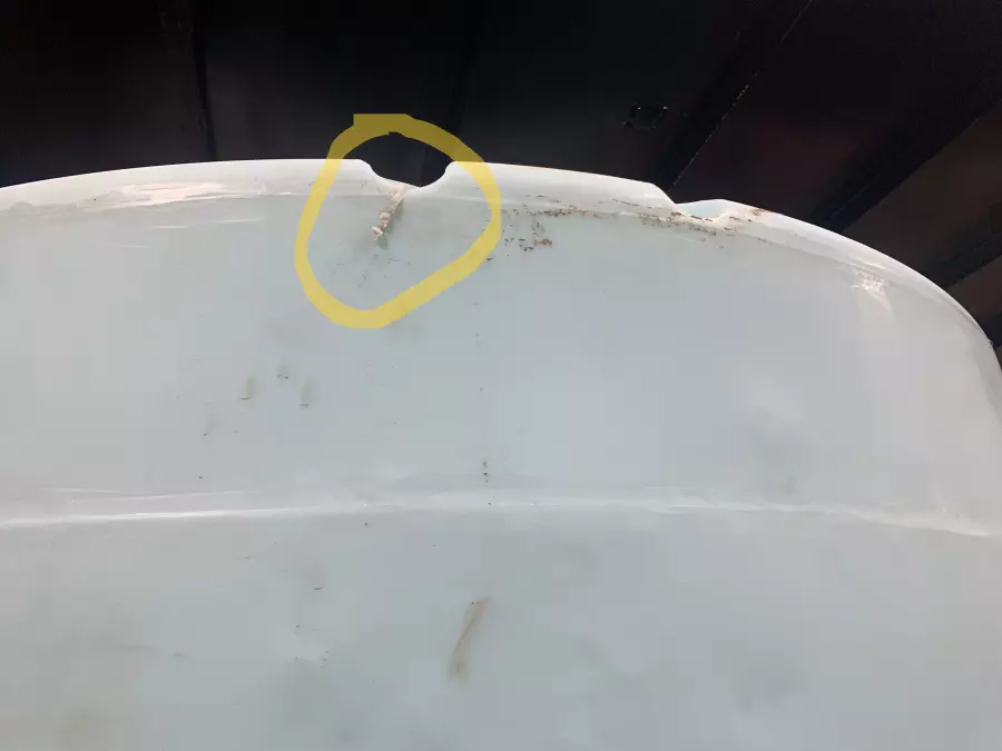 The tank had a cut in it. It appears as though someone on manufacturing took a sawzall to it. It could also have been caused by poor lashing during shipment, I suppose. In either case, IT IS NOT MY FAULT. And, none of this would have been an issue if they had properly scheduled delivery instead of just showing up whenever the heck they wanted!